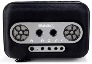 [easyreview title=”iMainGo X by Portable Sound Laboratories” cat1title=”Form Factor” cat1detail=”The iMainGo X is slightly bigger then the iMainGo and iMainGo 2. This is a very durable portable speaker solution. The reason it is bigger is that the iMainGo X houses a 12 hour rechargable battery. There is also a power off/on switch on the front of the unit, which was a real pain on the older models and is a great addition to iMainGo X.” cat1rating=”4.0″ cat2title=”Performance” cat2detail=”The iMainGo X sounds even better then its predecessors. In fact every person that has heard this, has asked where they can purchase their own. Battery life is great and lasts as long if not longer then stated. If you want to plug your guitar direct or through an iRig, the sound is incredible. iMainGo X features 2 headphone outputs which is great for many purposes. If you have 2 children wishing to share one ipod/iphone, or for commuters wishing to listen to music together. And for karaoke, there is also an audio input, or if you wish to daisy chain multiple iMainGo speaker systems, you can use the 2nd headphone jack.” cat2rating=”5.0″ cat3title=”Price” cat3detail=”At $69.99 USD, this portable sound solution is a deal and a half. Very pleased with the value. ” cat3rating=”5″ summary=”This is a MUST HAVE and one of the best accessories for iOS devices. Worth the price and definitely an attention grabber. And with a rechargable battery, this is a greener portable speaker solution. Great for that pool party, or for company on the back patio. Go get one today! And stay tuned. iMainGo for iPad is coming soon..
