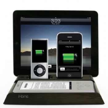 iHome introduces a universal Charging Station that charges all your tech gadgets in one shot. I know in my house I have multiple extension cords with splitters and cables running everywhere to charge up the iPhone(s), iPad, iPod Nano, Blackberry Bold, etc.. Well iHome hopes to change that with the iB969 Charging Station. Stay Tuned for a full review.