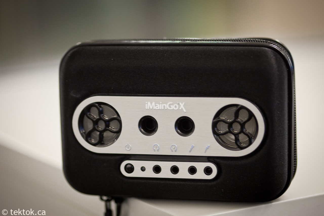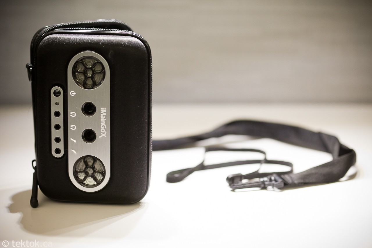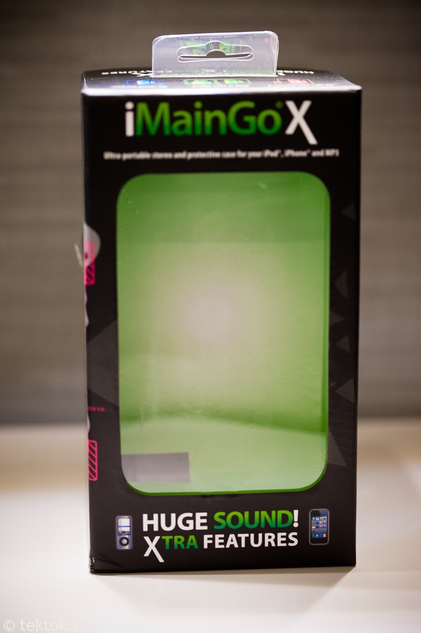 I have been waiting anxiously since October for our review unit and it finally arrived. Wow, is all I have to say. I have the original iMainGo that was designed for the older 30/60GB video ipods, and it has been the most durable portable speaker I have ever owned, and also the best sounding. The iMainGo X custom fits and protects all iPods (except Shuffle), iPhone, iPod Touch and most MP3 players. You can also plug in any 3.5mm device into the audio input such as an iPad, laptop, portable gaming system, etc…