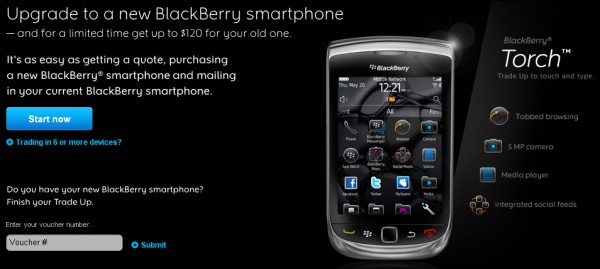 Earlier today, RIM introduced a Trade Up program in Canada for anyone looking to upgrade to a new Blackberry smartphone.  For a limited time, you can upgrade for up to $120 off of a newer Blackberry smartphone.