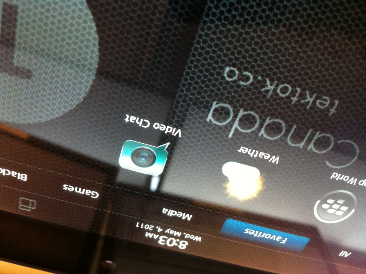 Early yesterday morning, RIM released an over the air update which included video chat for the Blackberry Playbook. If you are not sure where to find it, you can simply look for the icon on your home screen under the ALL tab. (or in my case Favorites)