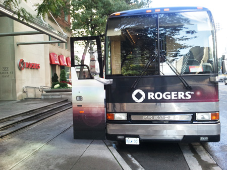 Well, how fast exactly is Rogers LTE offering? Extremely fast if you are within the core coverage map. Inside the Rogers tour bus, we were seeing speeds of 60MB download, 20MB upload on speedtest.net. Those are insane numbers for mobile broadband (by contrast, connected to my office ethernet on my laptop, I get only 30MB download / 27MB upload). I don’t know if the speeds we witnessed today on that bus are indicative of what we’ll see when not positioned directly in front of the Rogers Head Office, but it was still amazing to see that kind of speed happening over the air.