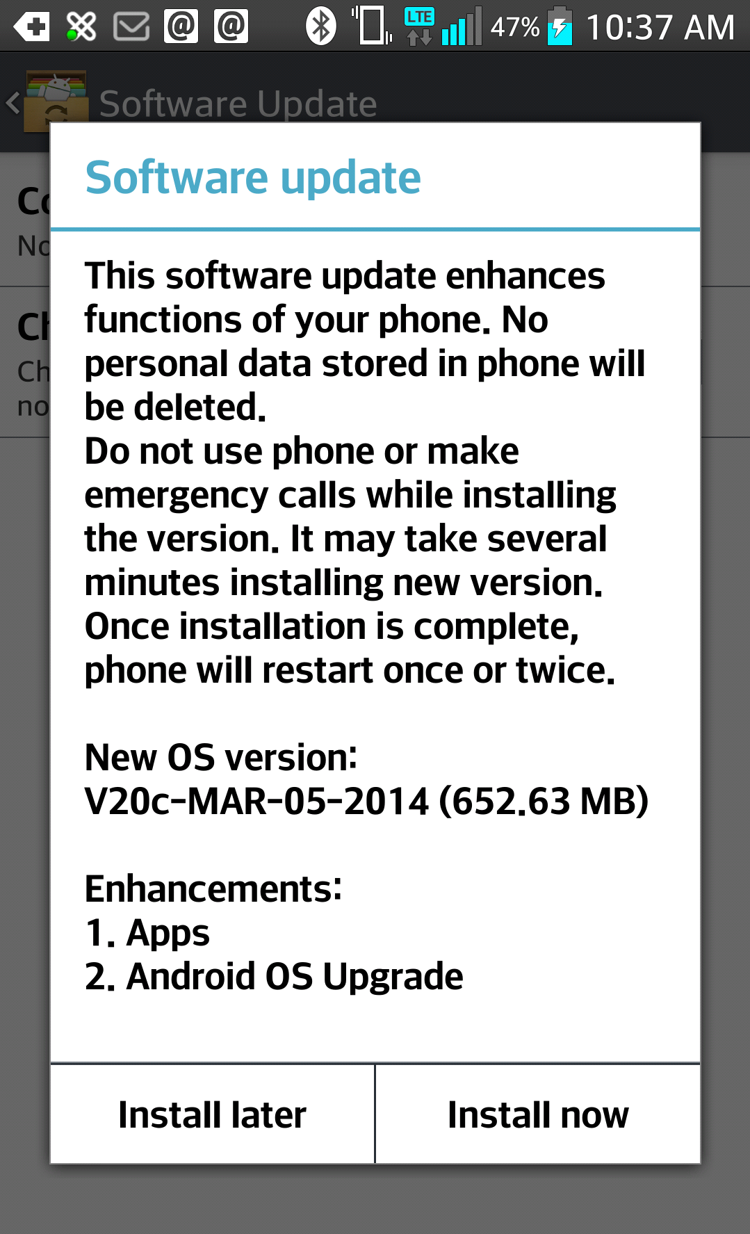 CANADIAN LG G2 RECEIVES ANDROID 4.4 KITKAT OS UPGRADE