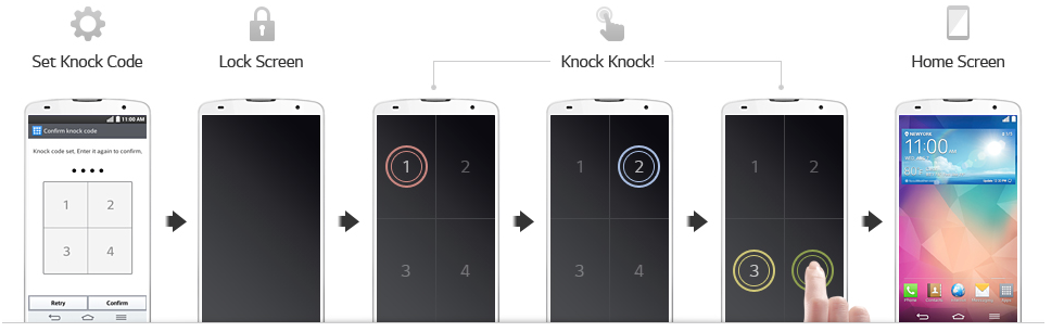 LG has taken the KnockON to a new level and it was something I had imagined would be great as the only problem with KnockON was there was still a pattern or password to enter. With a few simple knocks, you can not only wake the device but essentially authenticate with what LG claims is 80,000 unique knock patterns (86,367 to be precise) . If you own an LG G3, G Flex, G Pro 2, G2, G2 Mini, L Series III, or F7, and your software is up to date you can find the option to enable Knock Pattern in your Lock screen settings.