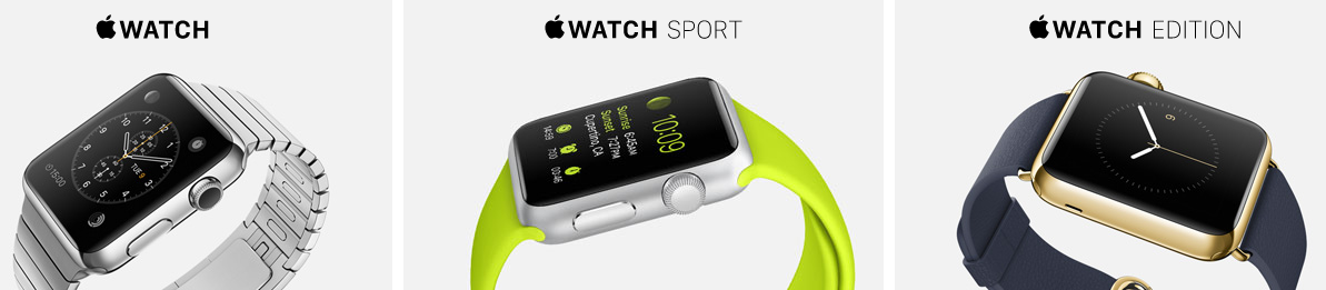 The Apple Watch collection features highly polished stainless steel and space black stainless steel cases. The display is protected by sapphire crystal. And there’s a choice of three different leather bands, a link bracelet, a Milanese loop, and a band made from high-performance fluoroelastomer.