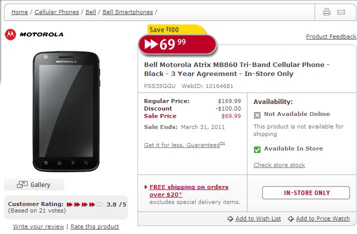Read More »Motorola Atrix on sale at Futureshop for $69.99 on 3 yr Contract